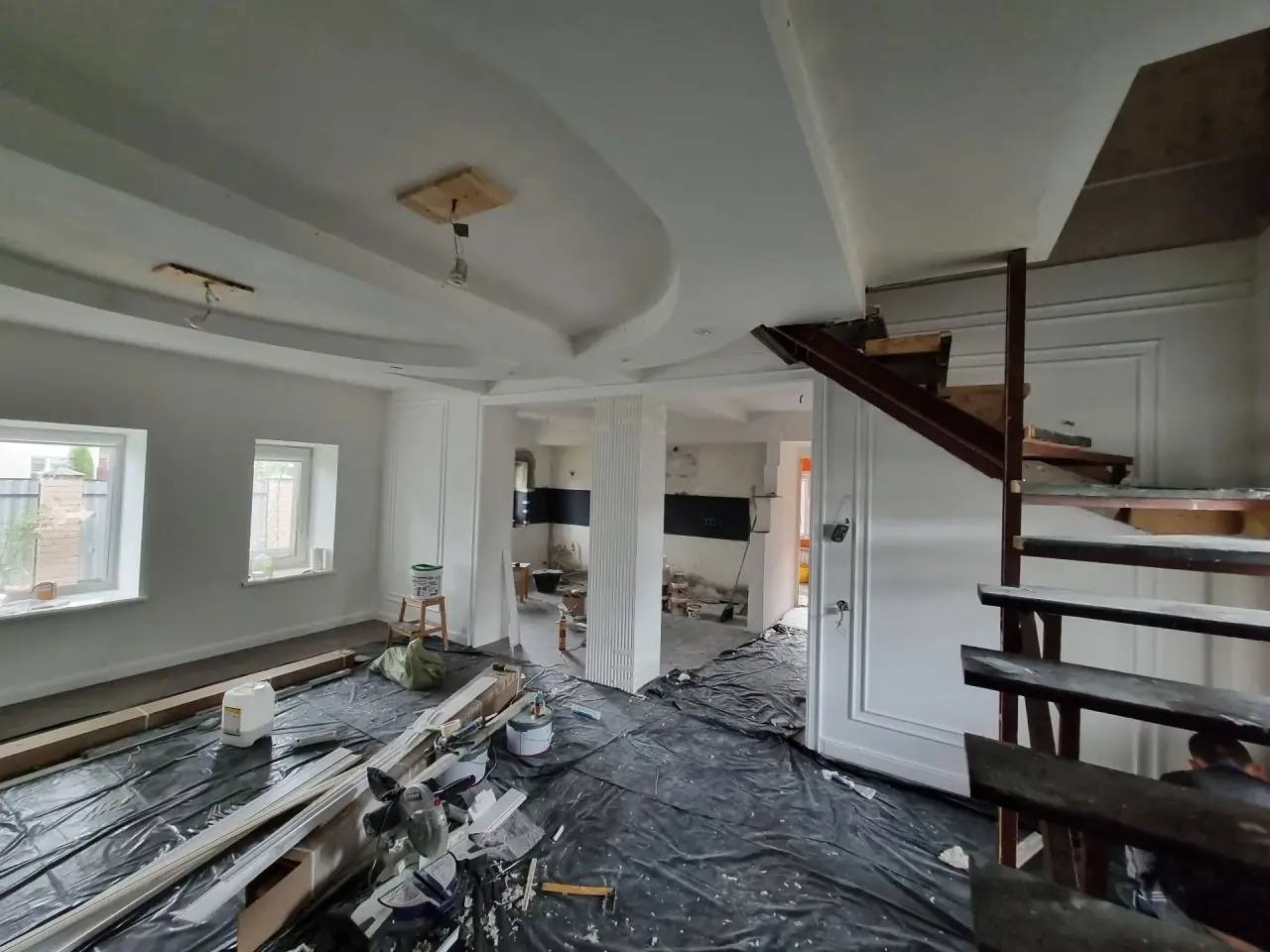 Здесь вы видите не идеализированные картинки, а настоящие этапы работ: от подготовки поверхностей и замены инженерных систем до финишной отделки лестничного пролёта, второго этажа и зон общего пользования. Все снимки сделаны в процессе выполнения работ — без обработки, без постановочных кадров, без скрытых дефектов.